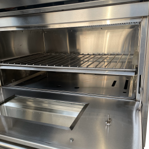 La parrilla principal es una obra maestra de diseño, con varillas de acero inoxidable de 3/8″, divididas en cuatro secciones para su fácil manejo, proporciona un amplio espacio para cocinar tus cortes de carne favoritos.